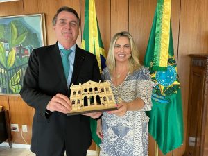 A Presidente Cida Borghetti entregou ao então Presidente Jair Bolsonaro, em Brasília, uma miniatura da fachada do Palácio Garibaldi, que passou a integrar o acervo do Palácio do Planalto.